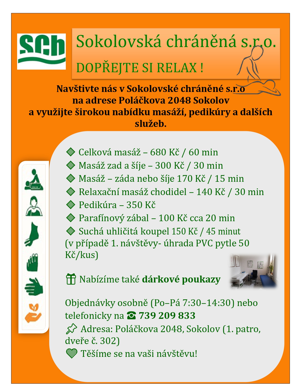Naše centrum služeb: masáže, pedikůra, parafín.
